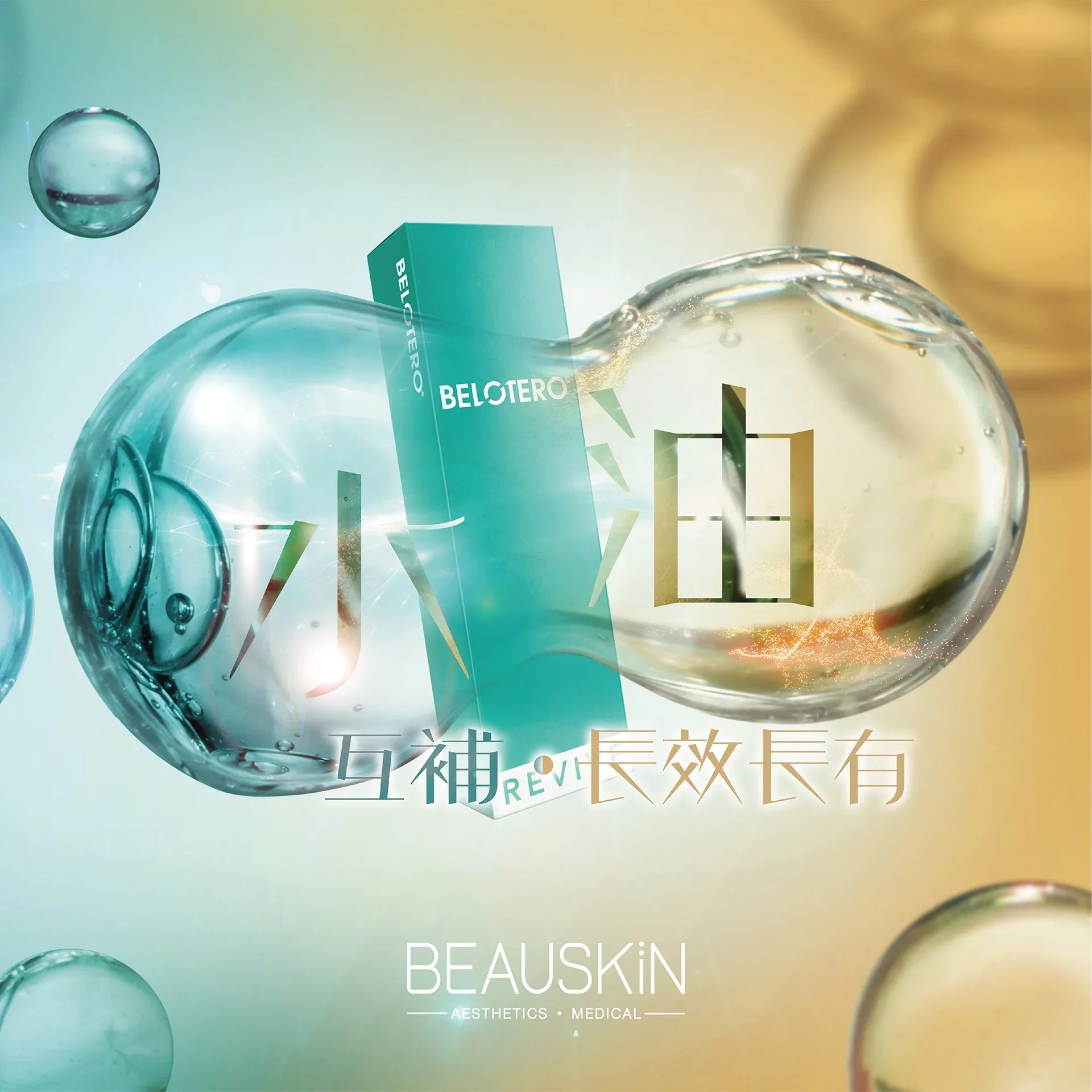 BELOTERO® 透明質酸系列設有不同產品,BELOTERO® REVIVE肌底活化透明質酸更是目前唯一採用甘油 (Glycerol) 和鏈結透明質酸獨特結合的保濕填充產品,其吸濕特性大大改善了保濕效果及皮膚水分,令補濕效能進一步加強提升,使皮膚更有光澤及年輕。