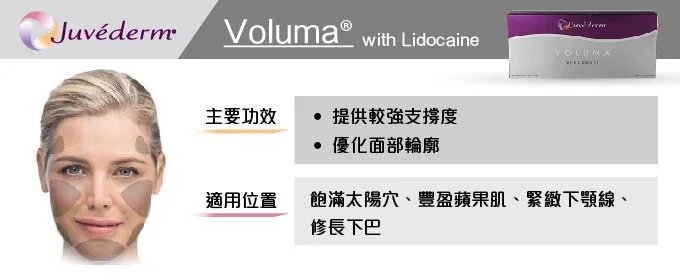 | Voluma® 提供較強支撐度 適用於:太陽穴、下半面 |