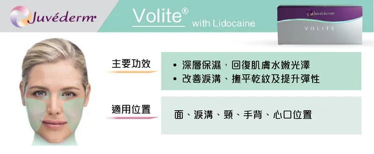 | Volite® 深層保濕,提升彈性 適用於:面頰、淚溝、頸項、手背、胸肩 (心口) |