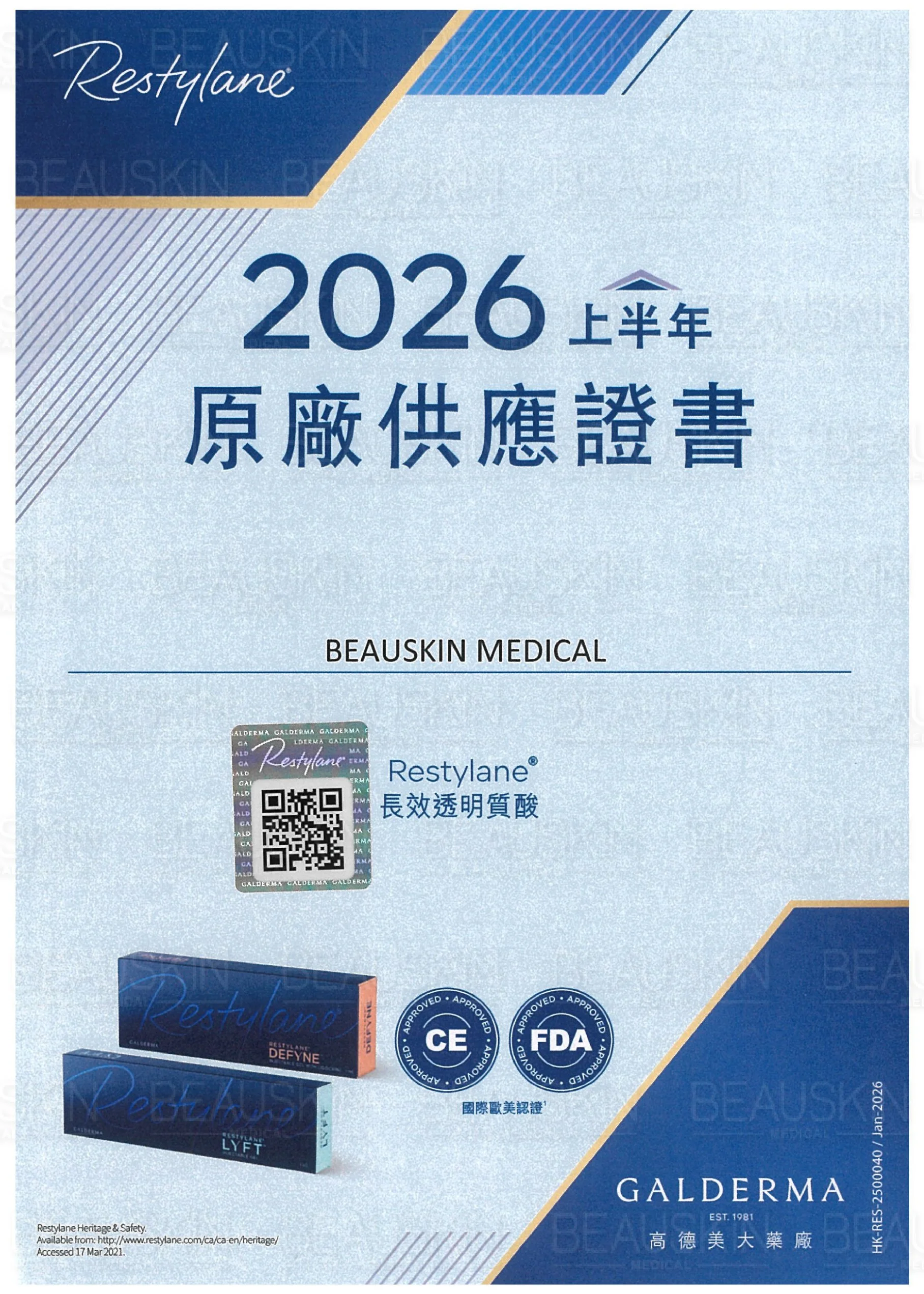 BEAUSKIN 再度榮獲Restylane原廠頒發「2022年度十大最佳銷量醫學美容中心」獎項,可見BEAUSKIN之專業地位實屬您的醫美首選 ! BEAUSKIN擁有駐場頂尖醫療團隊,憑藉獨特的美感,以及非凡的技術,為客戶針對不同部位進行微調,為求所有客人都可以得到理想中的完美輪廓。