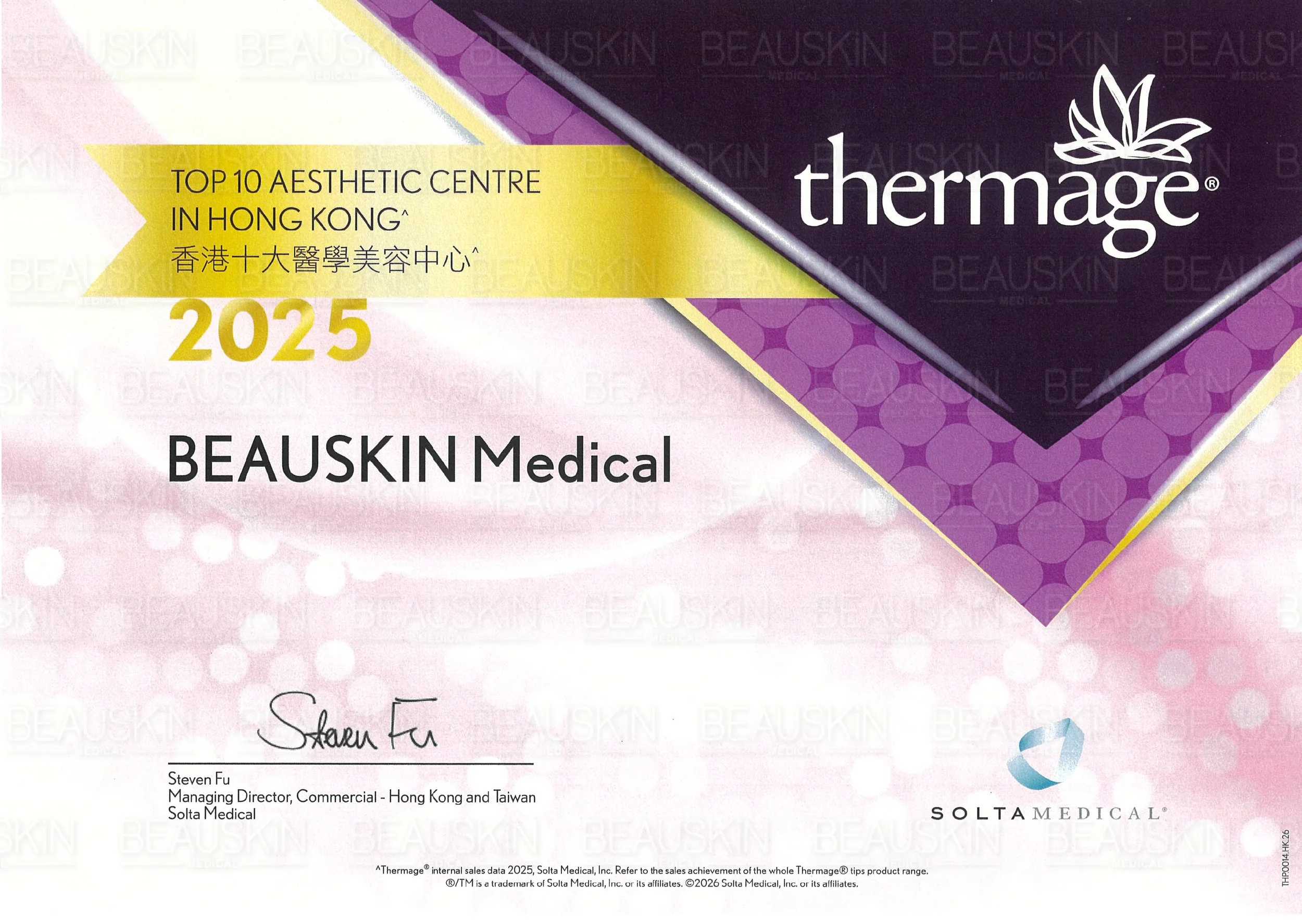 BEAUSKIN Medical連續7年榮獲全港 Thermage® FLX銷量10大
